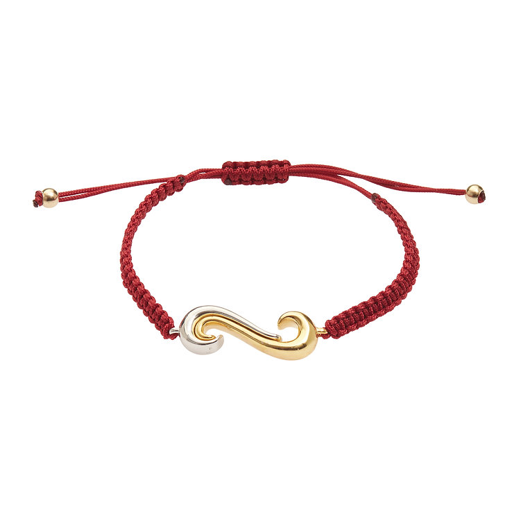 Handmade Apeiron bracelet crafted from 925 platinum-plated and gold-plated silver with a red cord. A 2026 good luck charm, symbolizing immortality, creativity, spiritual quest, and the transcendence of limits.