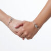 Handmade bracelet crafted from 18K white and rose gold, featuring full-cut diamonds and an oval blue sapphire.