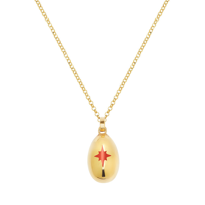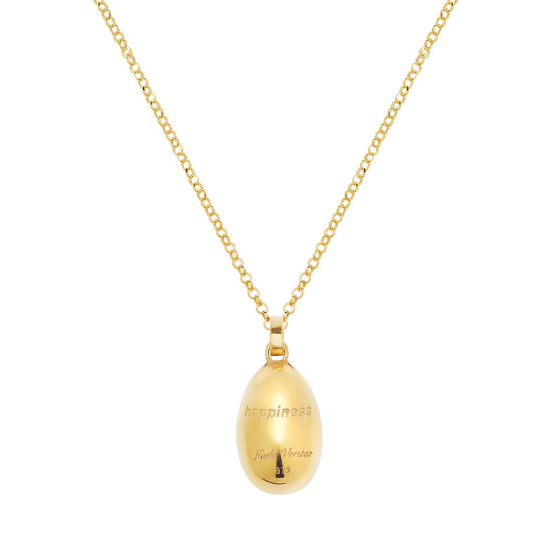 Handmade egg pendant in gold-plated 925 silver with red-orange enamel and a 50 cm chain.