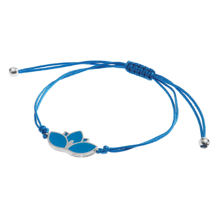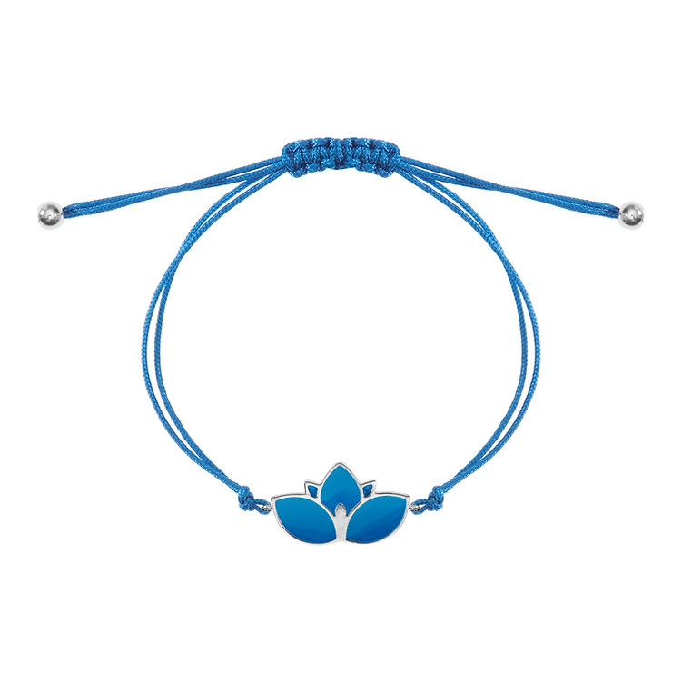 Lotus Bracelet in Platinum-Plated 925 Silver with Blue Enamel and Cord