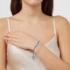 Handmade Lotus bracelet in platinum-plated 925 silver with blue enamel and cord.