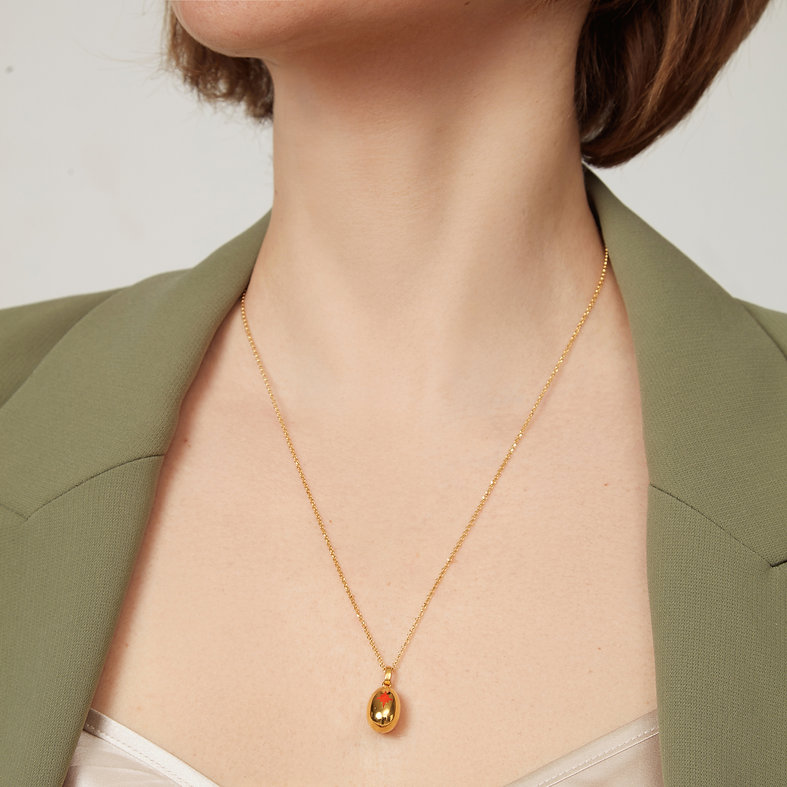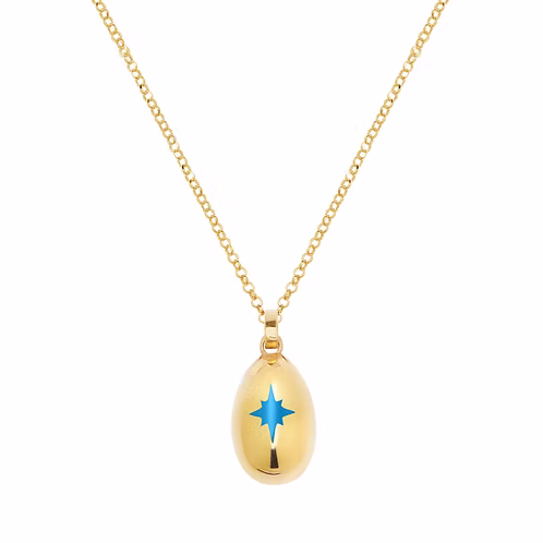 Αβγό μενταγιόν χειροποίητο ασήμι 925 επίχρυσο με κόκκινο αστέρι και καδένα 50 εκ.