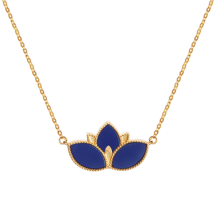 Χειροποίητο κολιέ λωτός χρυσό 14ΚΤ Χρυσό με πάστα Lapis.