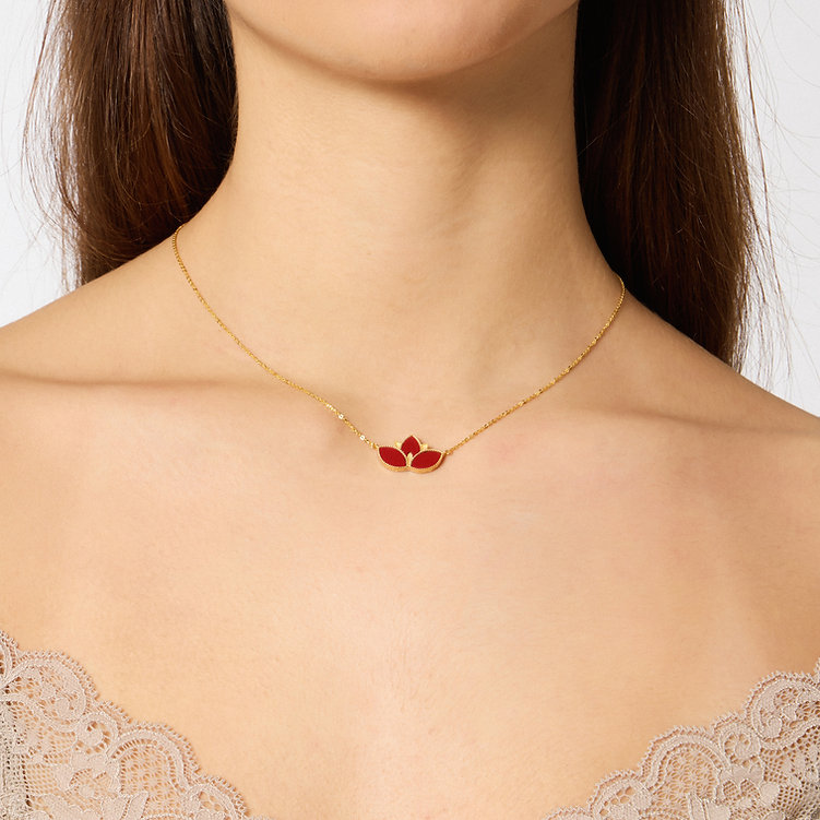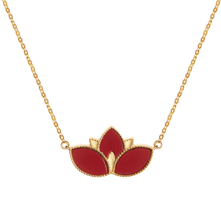 Χειροποίητο Κολιέ λωτός χρυσό14ΚΤ Χρυσό με πάστα κόκκινο κοράλλι.