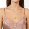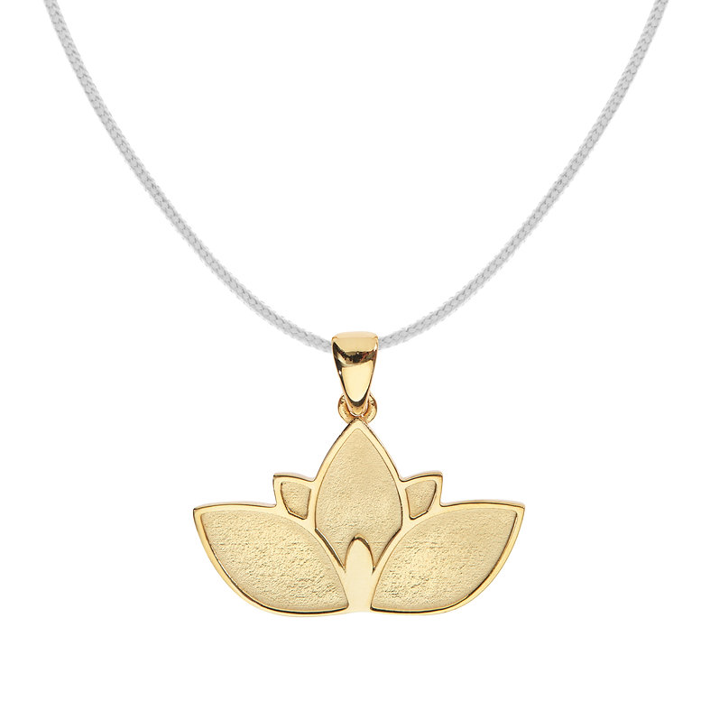 Χειροποίητο Μενταγιόν Λωτός χρυσό Κ14 με λευκό κορδόνι. Διαστάσεις: 25mm*22mm.