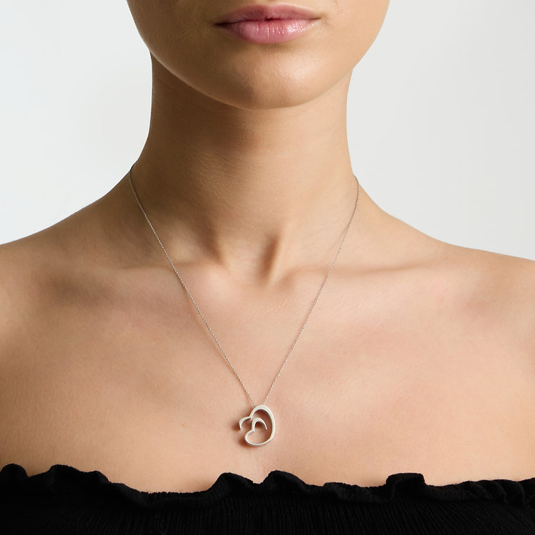 Ασημένιο μενταγιόν 925 χειροποίητο με δίδυμες καρδιές και ασημένια αλυσίδα 45εκ.