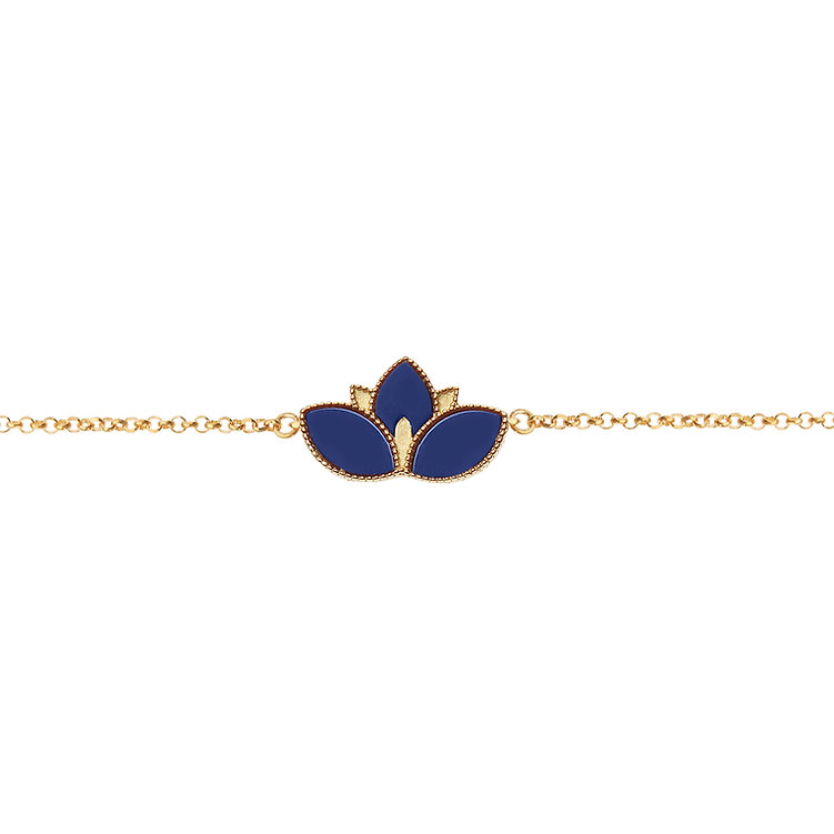 Χειροποίητο βραχιόλι Λωτός Χρυσό 14ΚΤ με πάστα Lapis.